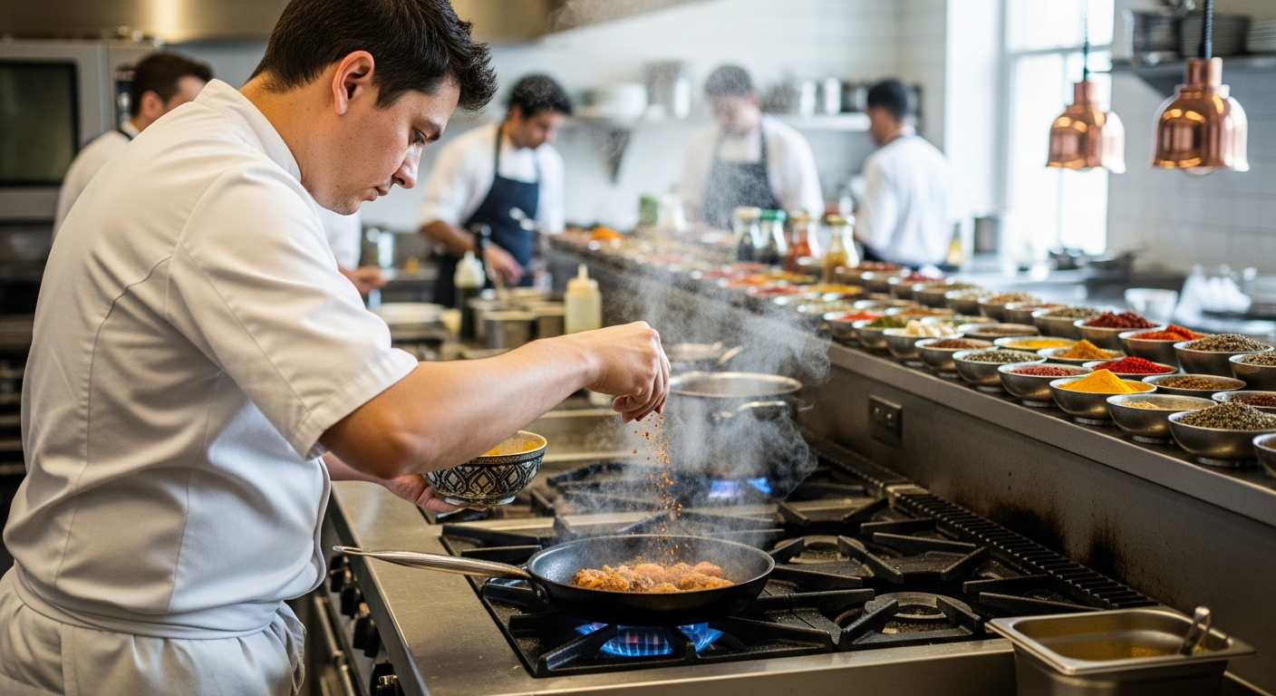 Spices in Gourmet Dishes and Restaurant Kitchens